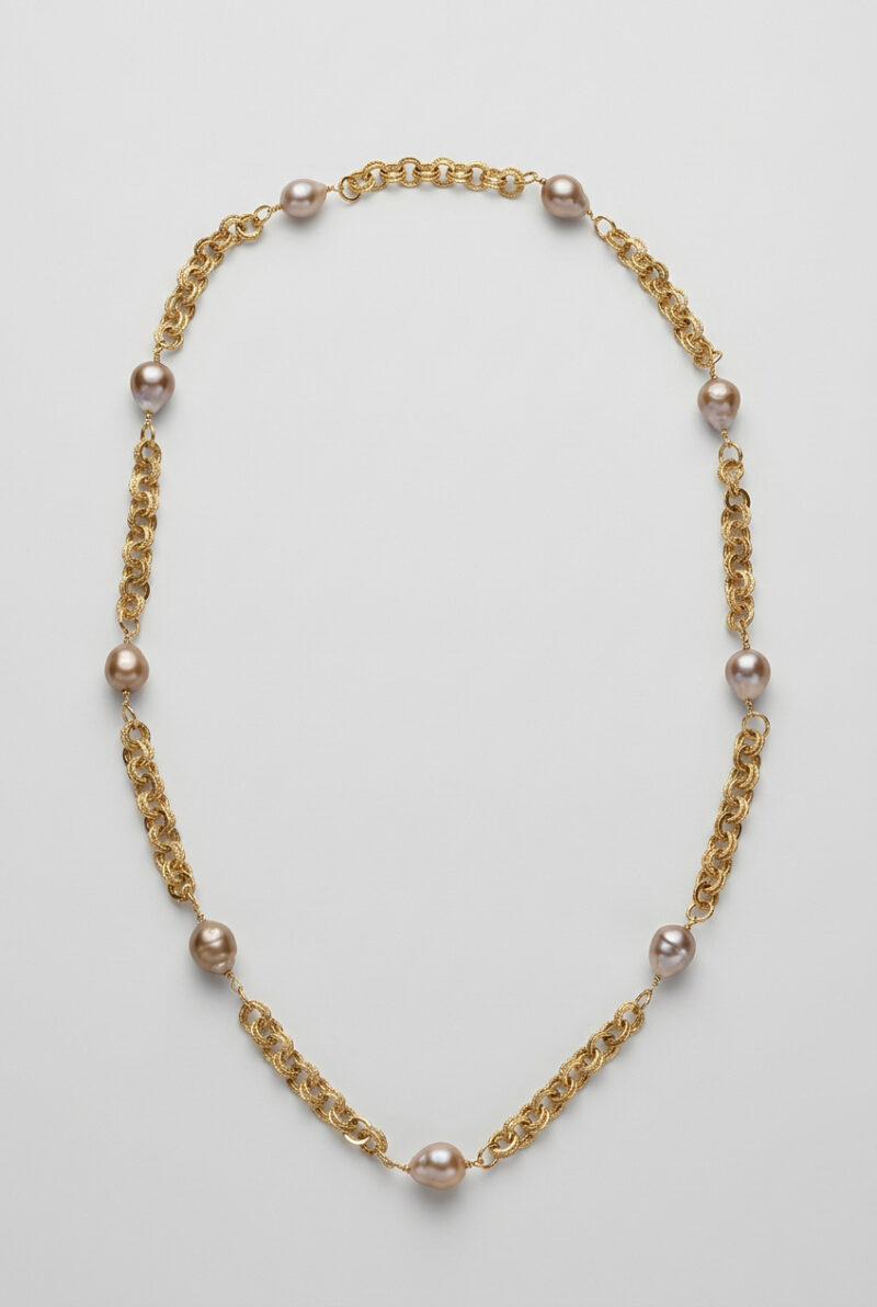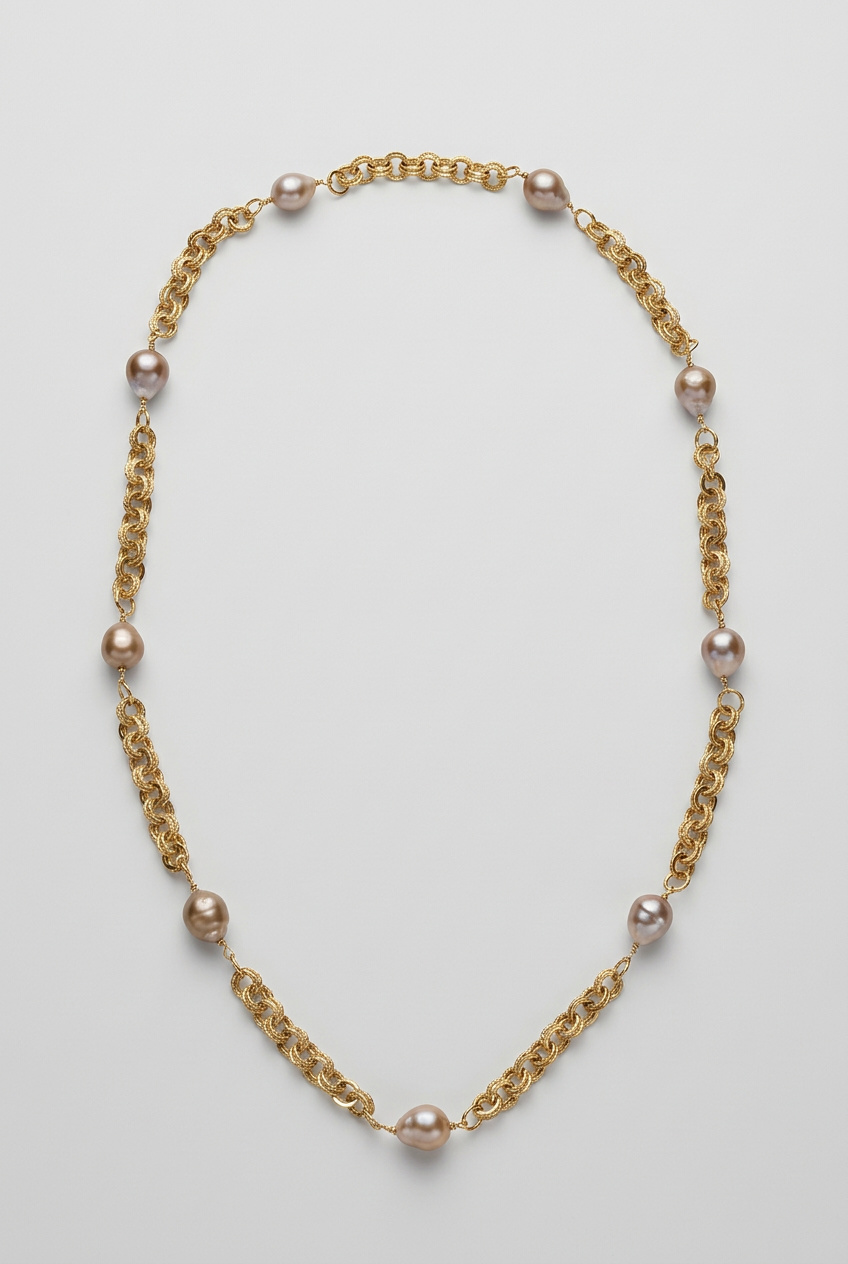 | Barok inci ve altın kaplama parçalarla yapılmıştır. |