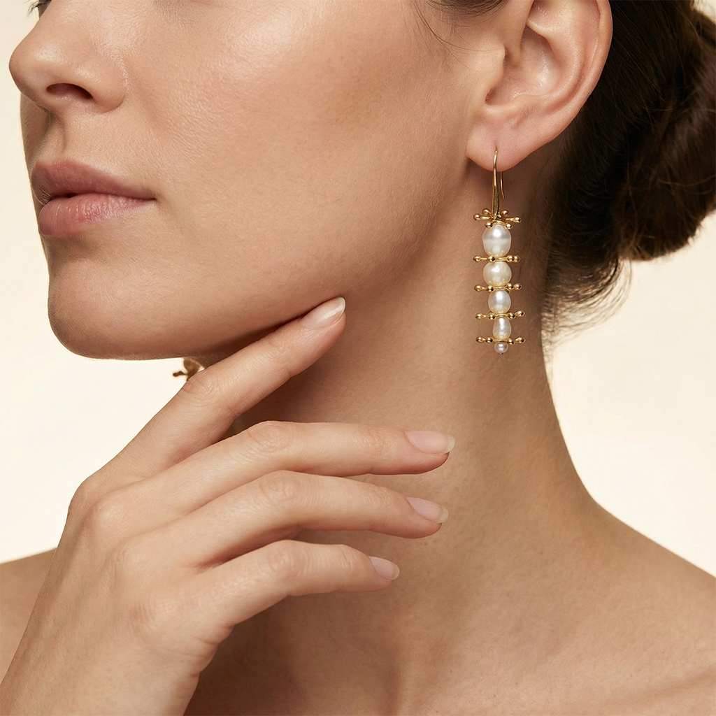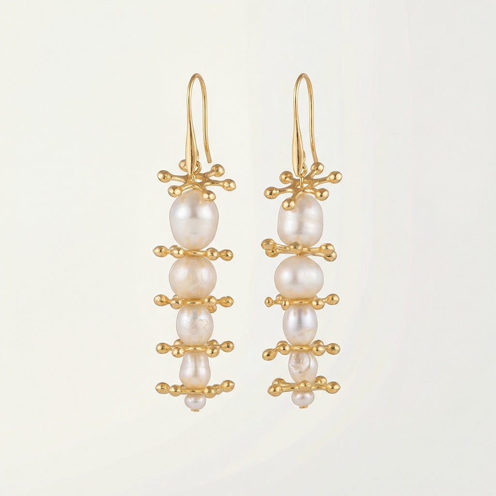 Doğal inciler ve altın kaplama parçalarla yapılmıştır.