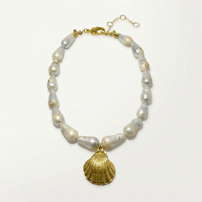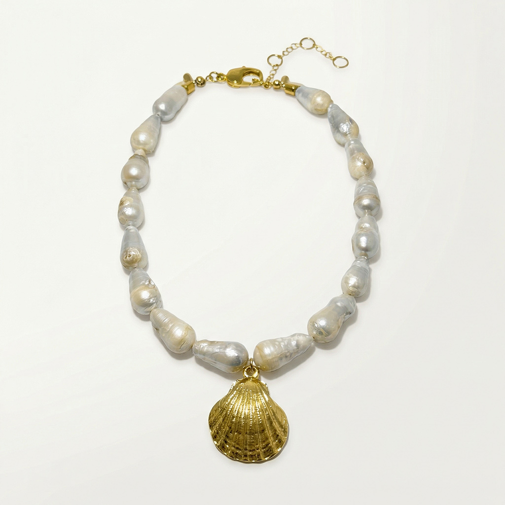 Barok inciler ve altın kaplama parçalarla yapılmıştır.