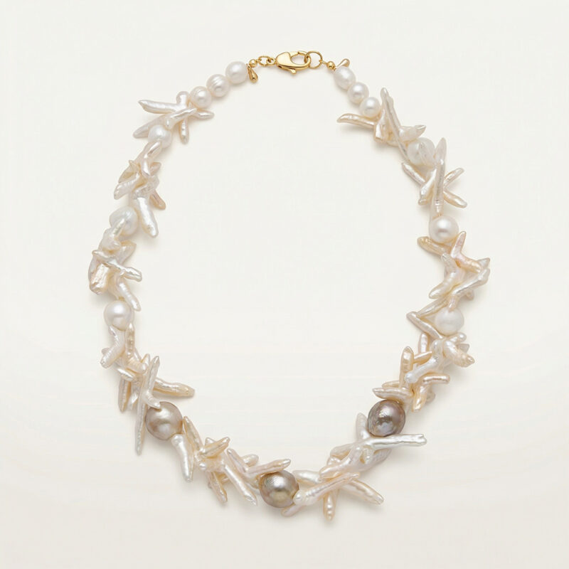 Çeşitli barok inciler ve altın kaplama parçalarla yapılmıştır.