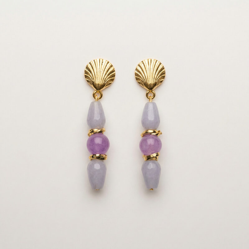 Kalsedon, kunzit taşlı ve altın kaplama parçalarla yapılmıştır.
