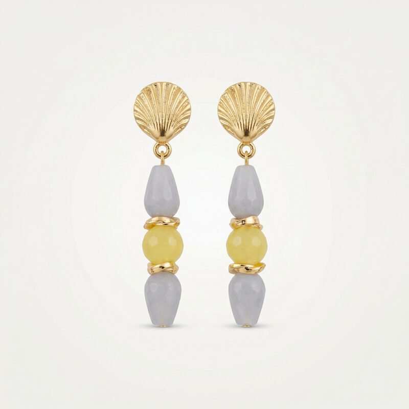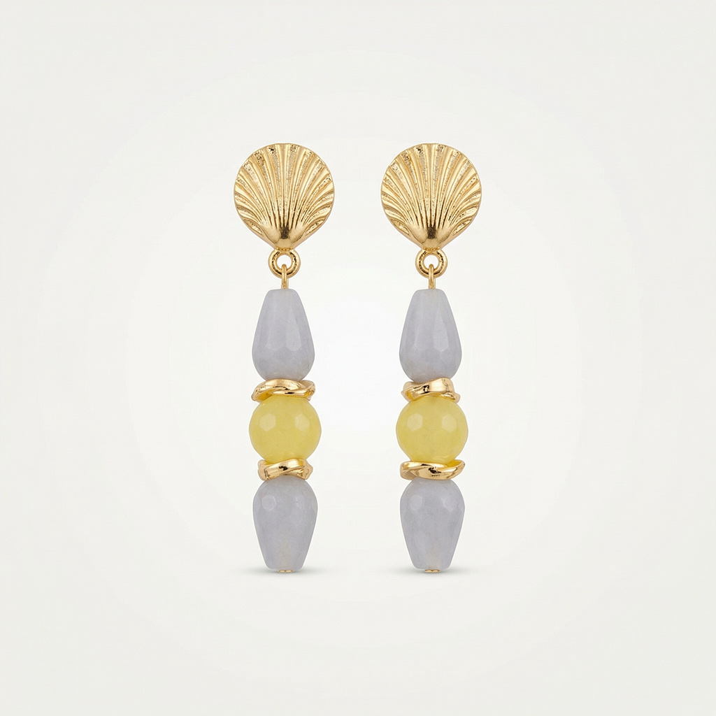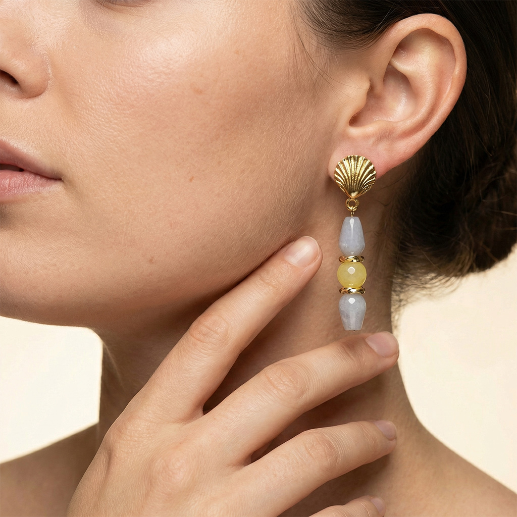 Kalsedon, limon kuvars taşı ve altın kaplama parçalarla yapılmıştır.